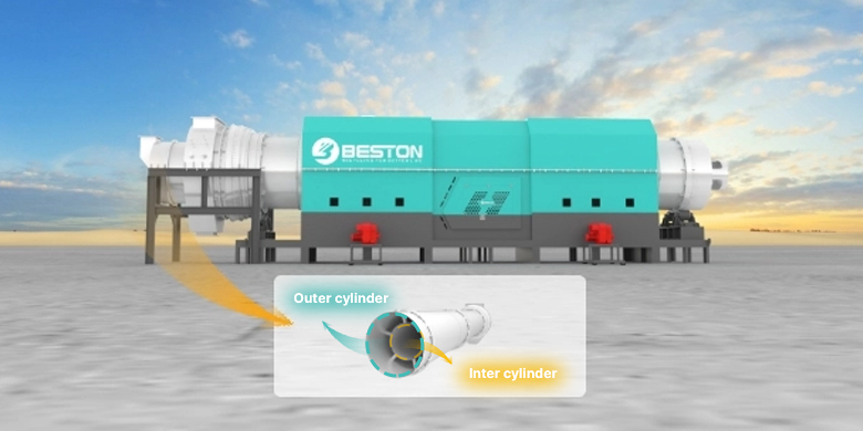 The inner and outer double-cylinder structure ensures thorough carbonization and uniform reaction of the material.